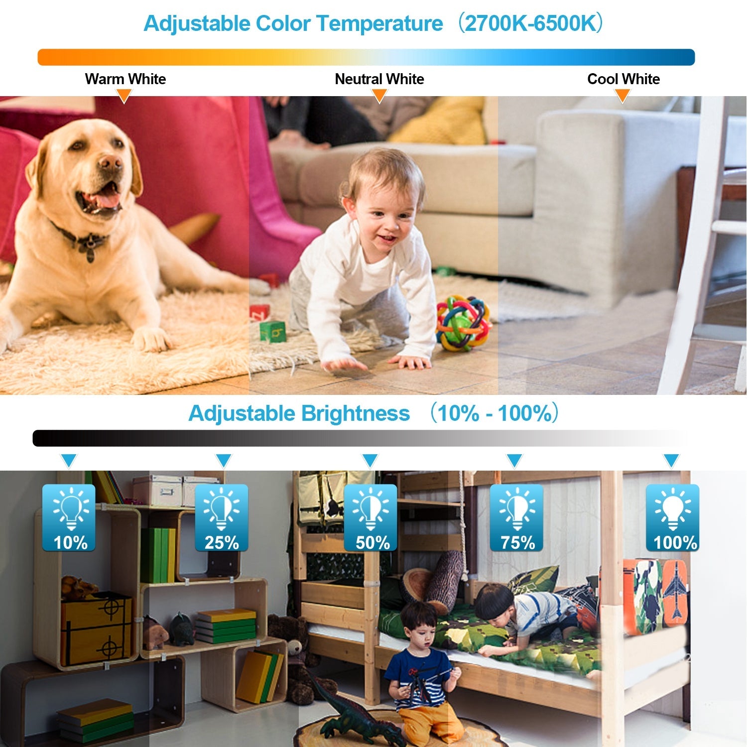 【Dimmbar Helligkeit】Dank der mitgelieferten Fernbedienung können Sie die gewünschte Lichtintensität stufenlos einstellen und so die perfekte Helligkeit für Ihre Räume einstellen. Die Helligkeit kann von 10% bis 100% und Farbtemperaturen von 2700K-6500K eingestellt werden. Sie können die Helligkeit und Farbtemperatur des Lichts nach Ihren Bedürfnissen anpassen.Um den Bedürfnissen verschiedener Situation gerecht zu werden.Sie lässt sich die Leuchte bequem vom Sofa aus steuern.