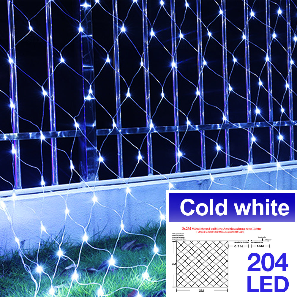 3 * 2M LED Lichternetz Lichterkette mit 204 LEDs Weihnachten mit Steuerbox Netz-ineinander greifen