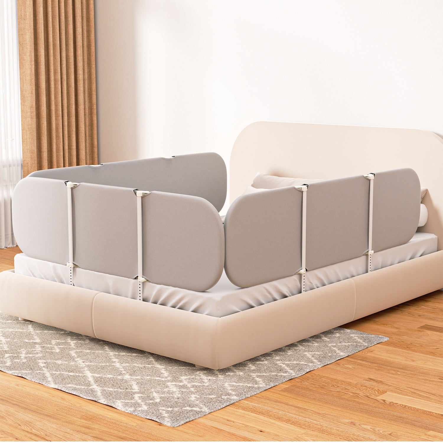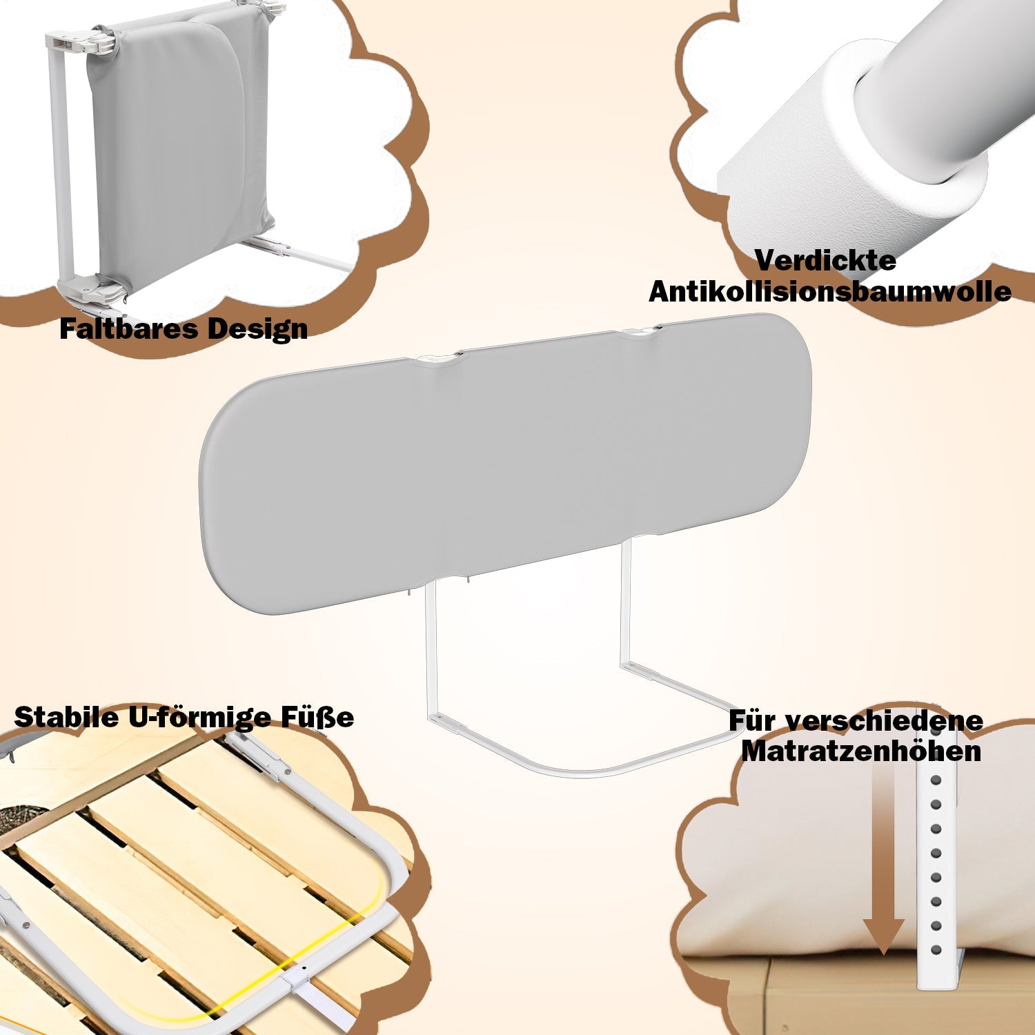 Hochwertige Materialien: Die Bettgitter sind aus strapazierfähigem Oxford-Gewebe gefertigt, das weich im Griff, abriebfest und reißfest ist. Der Bezug lässt sich leicht abnehmen und reinigen. Der stabile Stahlrahmen bietet dauerhafte Sicherheit, während die verdickte Anti-Kollisions-Polsterung Ihr Baby vor versehentlichen Stößen schützt.