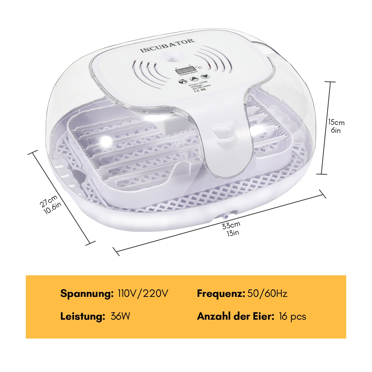 Brutautomat Vollautomatisch Inkubator für Hühner 16 Eier