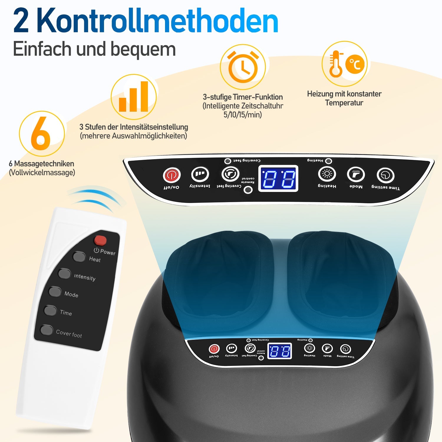 Heizfunktion: Das Fußmassagegerät mit Heizfunktion hat eine Überhitzungsschutzfunktion, die hilft, die Blutzirkulation zu verbessern, die Körperermüdung zu reduzieren und den Schlaf zu fördern.