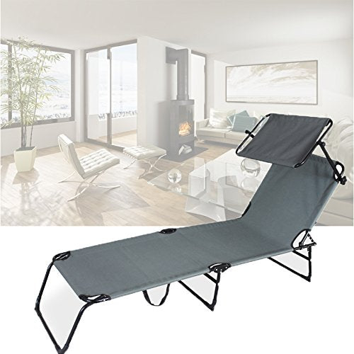 Grau Klappbar Gartenliege mit Sonnendach Sonnenliege