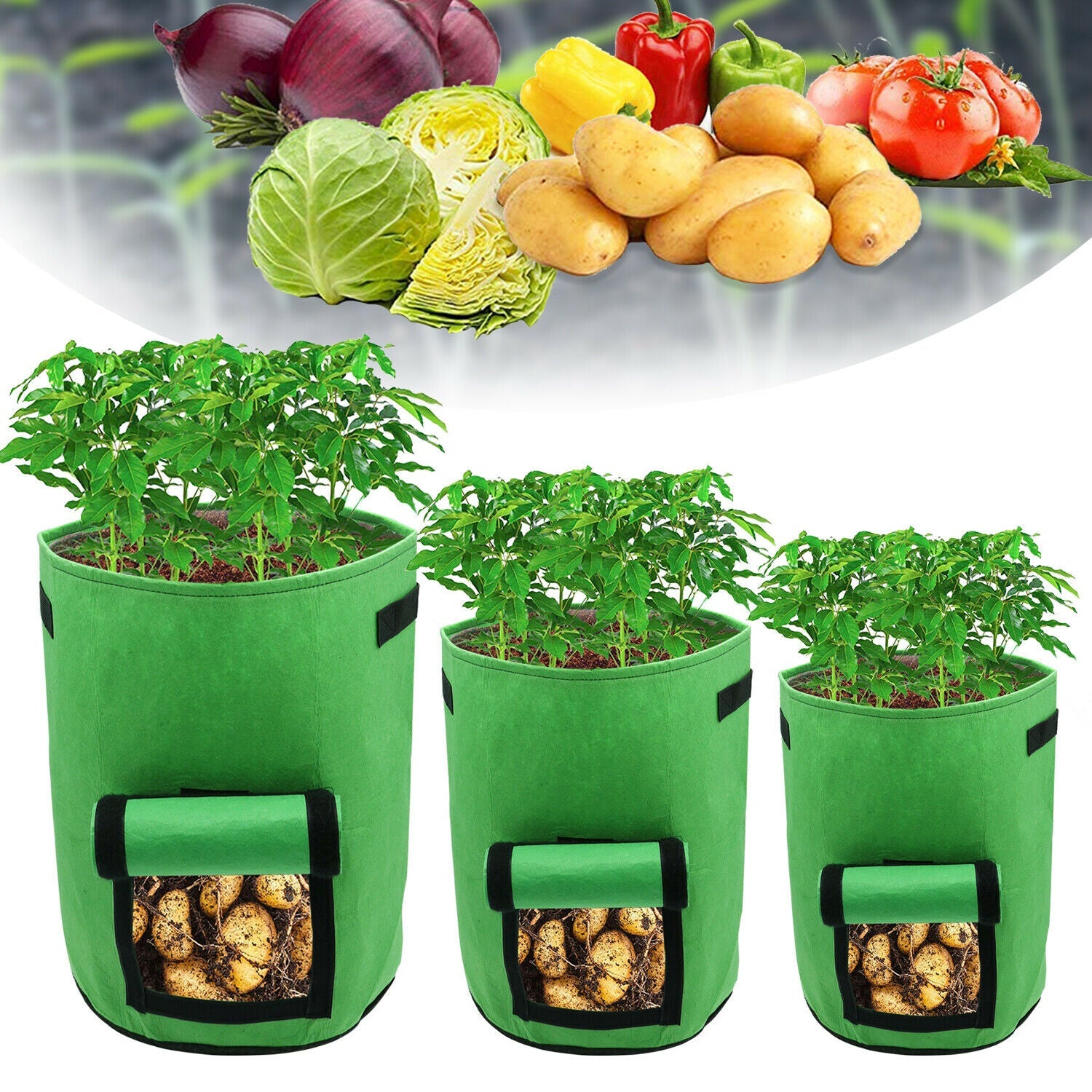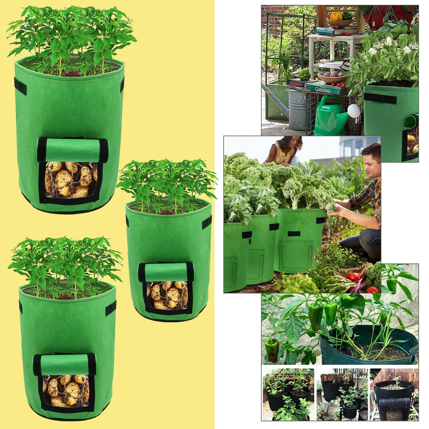 Die Pflanzensäcke können für den Innen- und Außenanbau, zum Anbau von Kartoffeln, Tomaten, Karotten, Zwiebeln und vielen anderen Gemüsen oder Blumen verwendet werden.