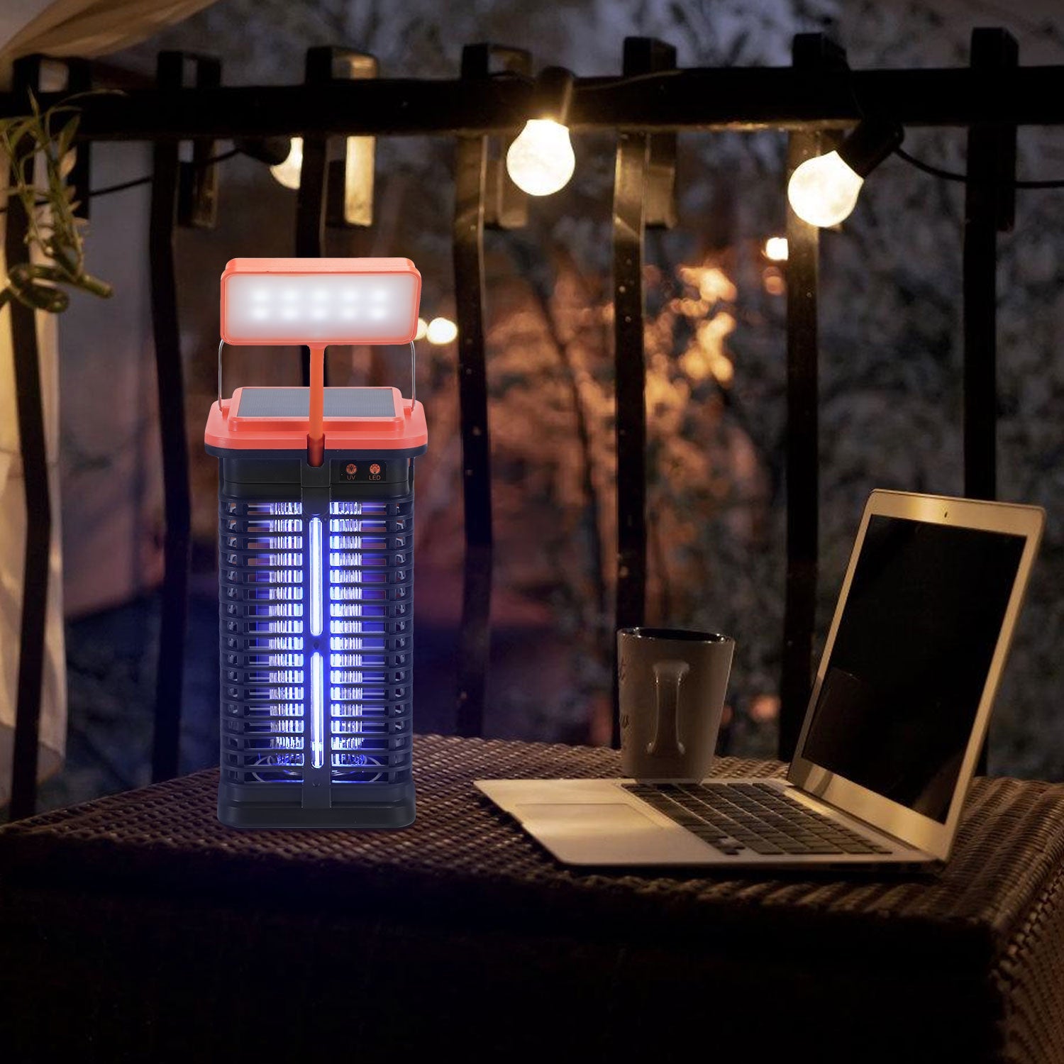 Doppelte Aufladung Ausgestattet mit einem 4000mAh Hochleistungsakku, unterstützt es Solarladen oder Laden über ein USB-Kabel. Nachdem er vollständig aufgeladen ist, kann der Mückentötemodus 10-12 Stunden dauern, während der Nachtbeleuchtungsmodus 24-Stunden dauern kann, mit einer Ladezeit von 3-4 Stunden, was es bequem und effizient macht.