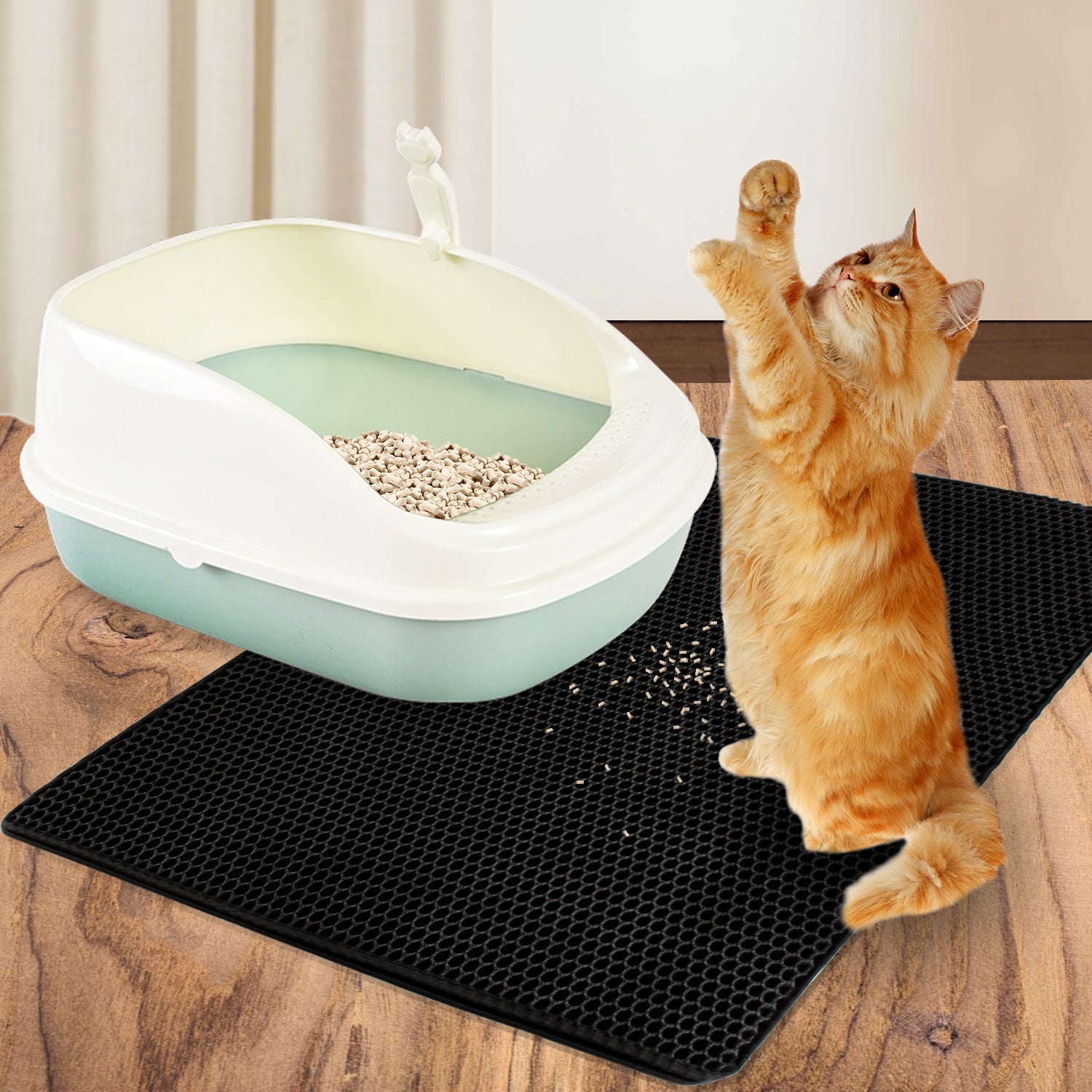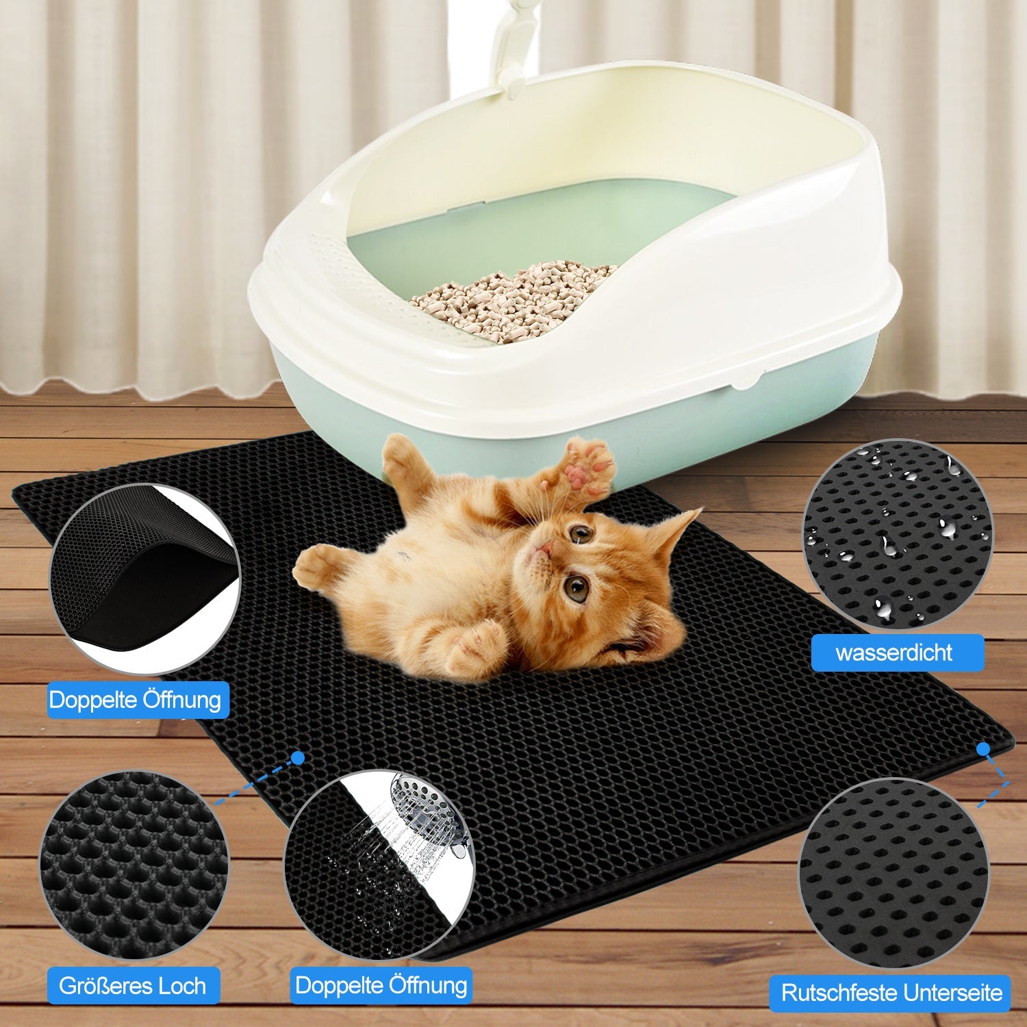 🐈【Großes Maß】Die große Fläche von 78 * 60 cm kann mehr Abfall sammeln.Es ist geeignet für Katzentoilette XXL, Katzentoilette mit Sieb, geschlossene Katzentoilette.