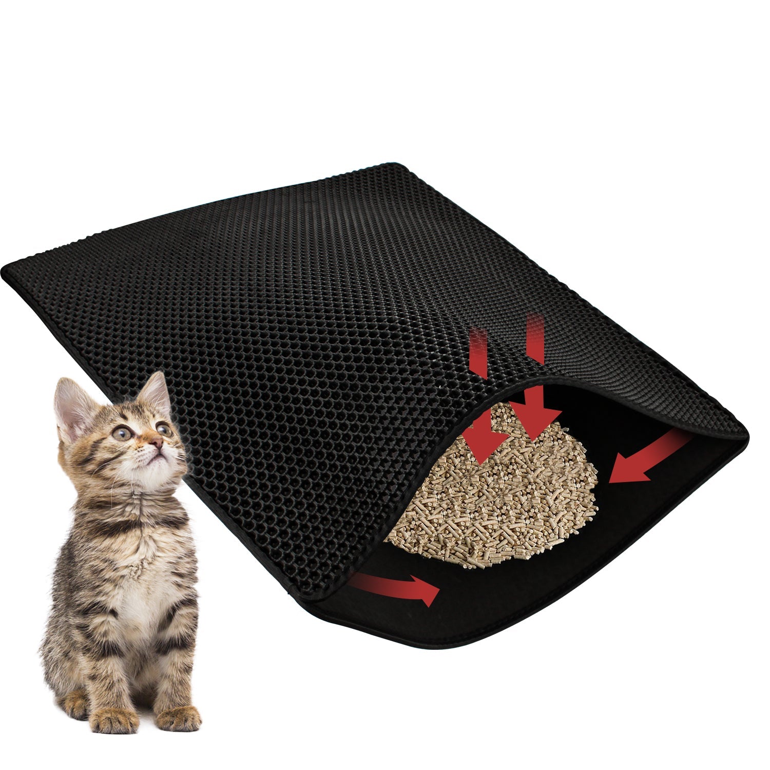 🐈【Doppelte Schichte & Waben Design】 Die Matte sammelt den Abfall oben, damit er nicht verstreut wird. Der Abfall geht durch die Löcher bis zur unteren Schicht. Die untere Schicht ist wasserdicht, damit der Urin von Katzen nicht durchgeht. Ihrer Boden wird vor Abfall und Urin geschützt und bleibt trocken.