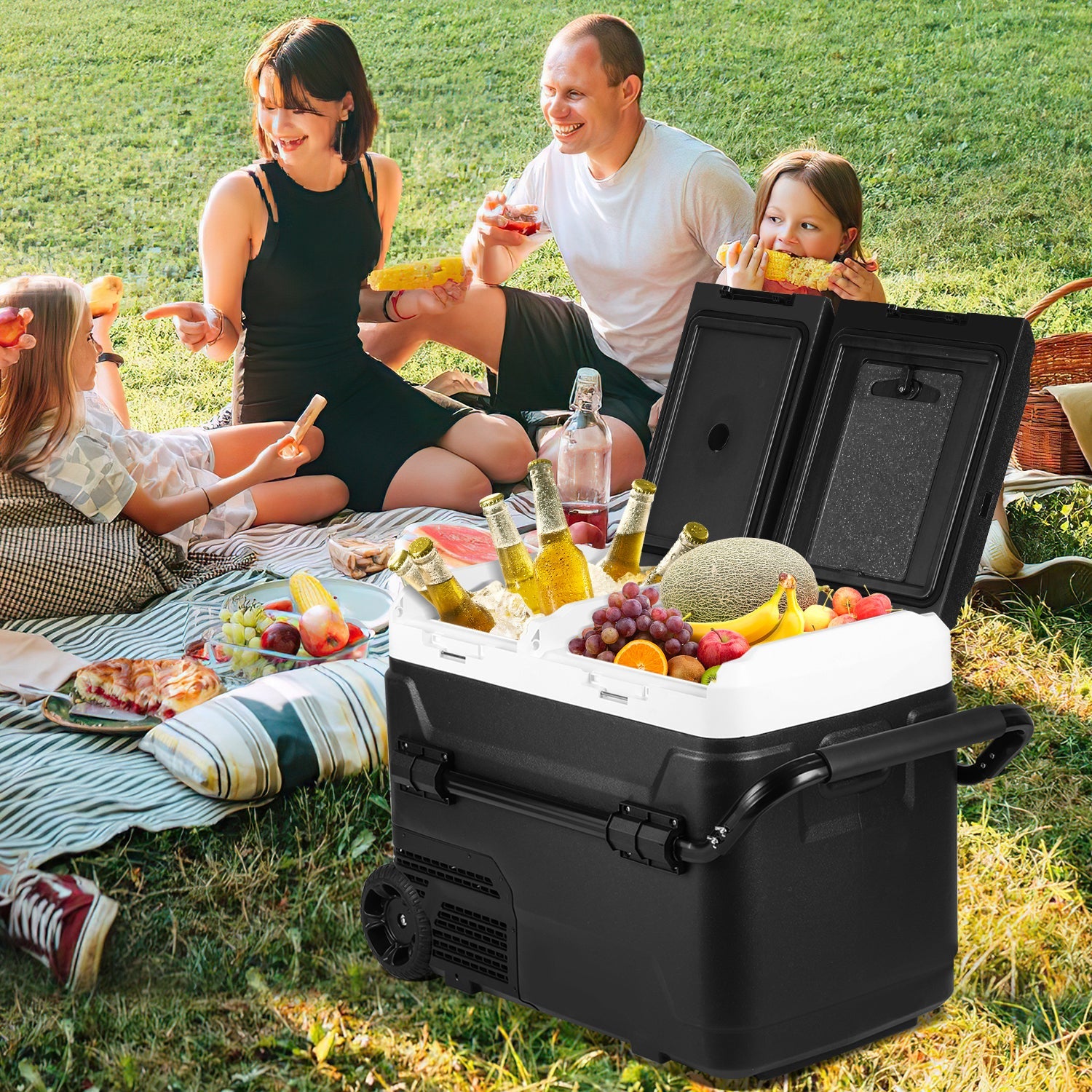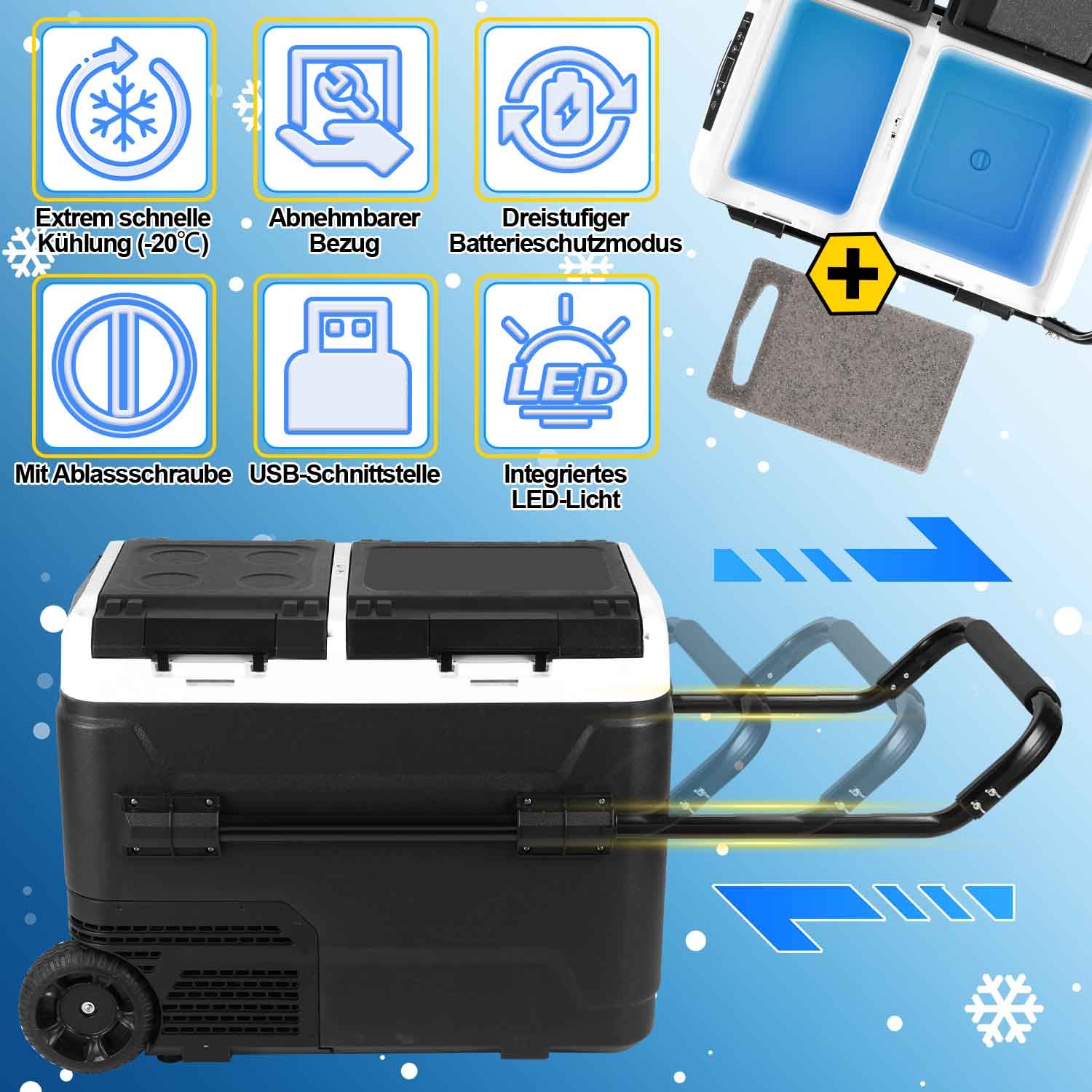 Duales Zonen-Design: Der Auto Kühlschrank mit 50 Litern Volumen bietet ein innovatives duales Zonen-Design, das eine unabhängige Temperaturkontrolle für Kühl- und Gefrierbereich ermöglicht (-20 bis 20 °C), ideal für alle Ihre Outdoor-Bedürfnisse.