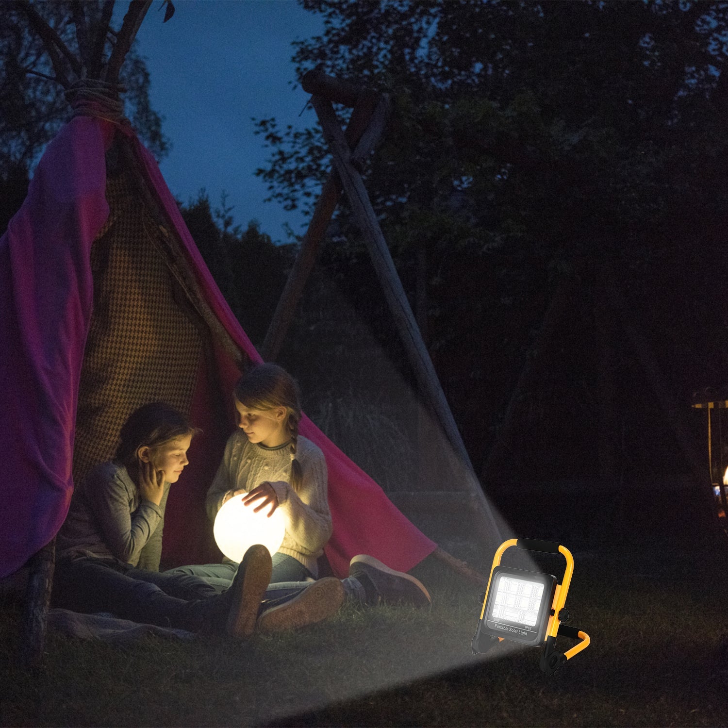 Sie wird mit einem stabilen Ständer und einem ergonomischen Griff geliefert, so dass Sie sie aufhängen oder auf den Boden stellen können. Der Ständer ermöglicht es Ihnen, die Leuchte in verschiedenen Winkeln einzustellen, um den gewünschten Beleuchtungsbereich abzudecken.