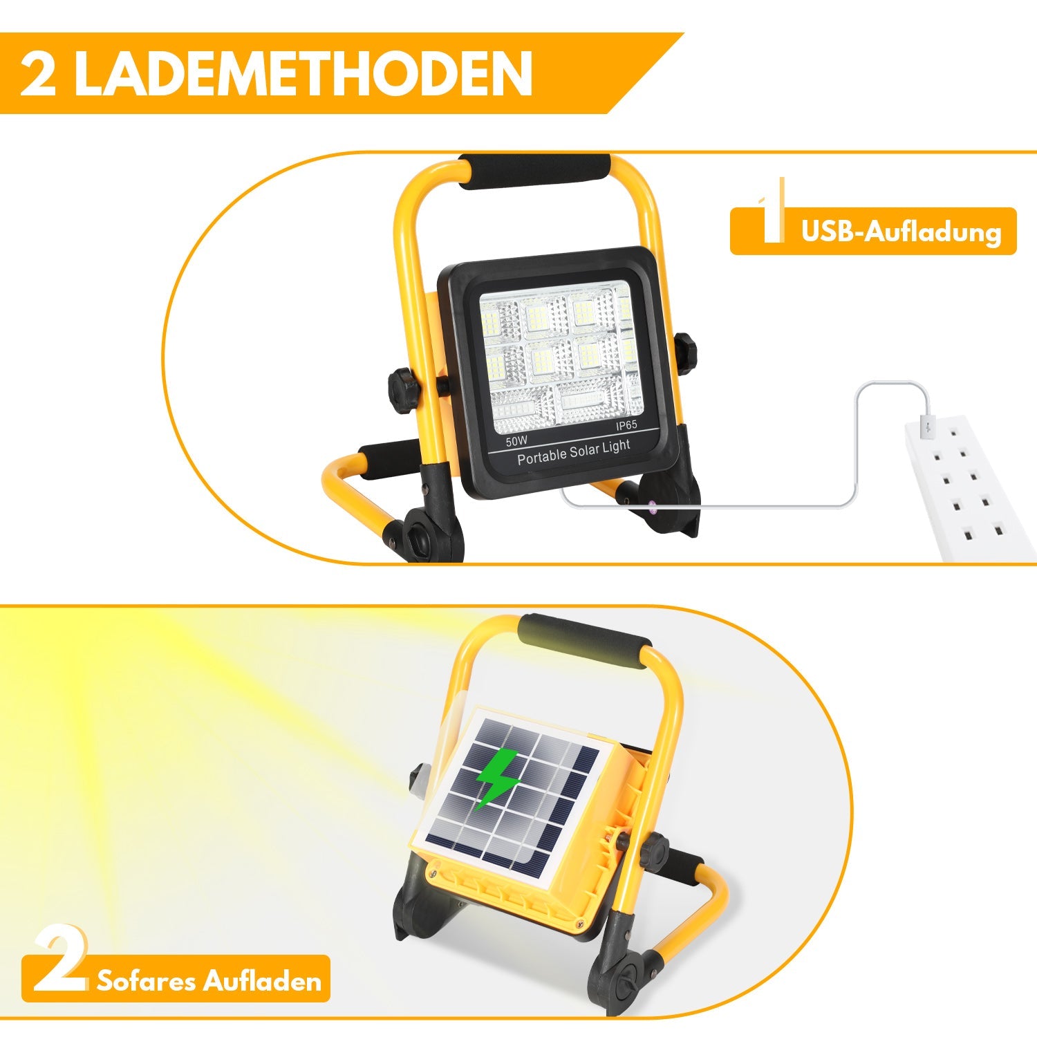 LED Akku Fluter Baustrahler Solar 50W/100W