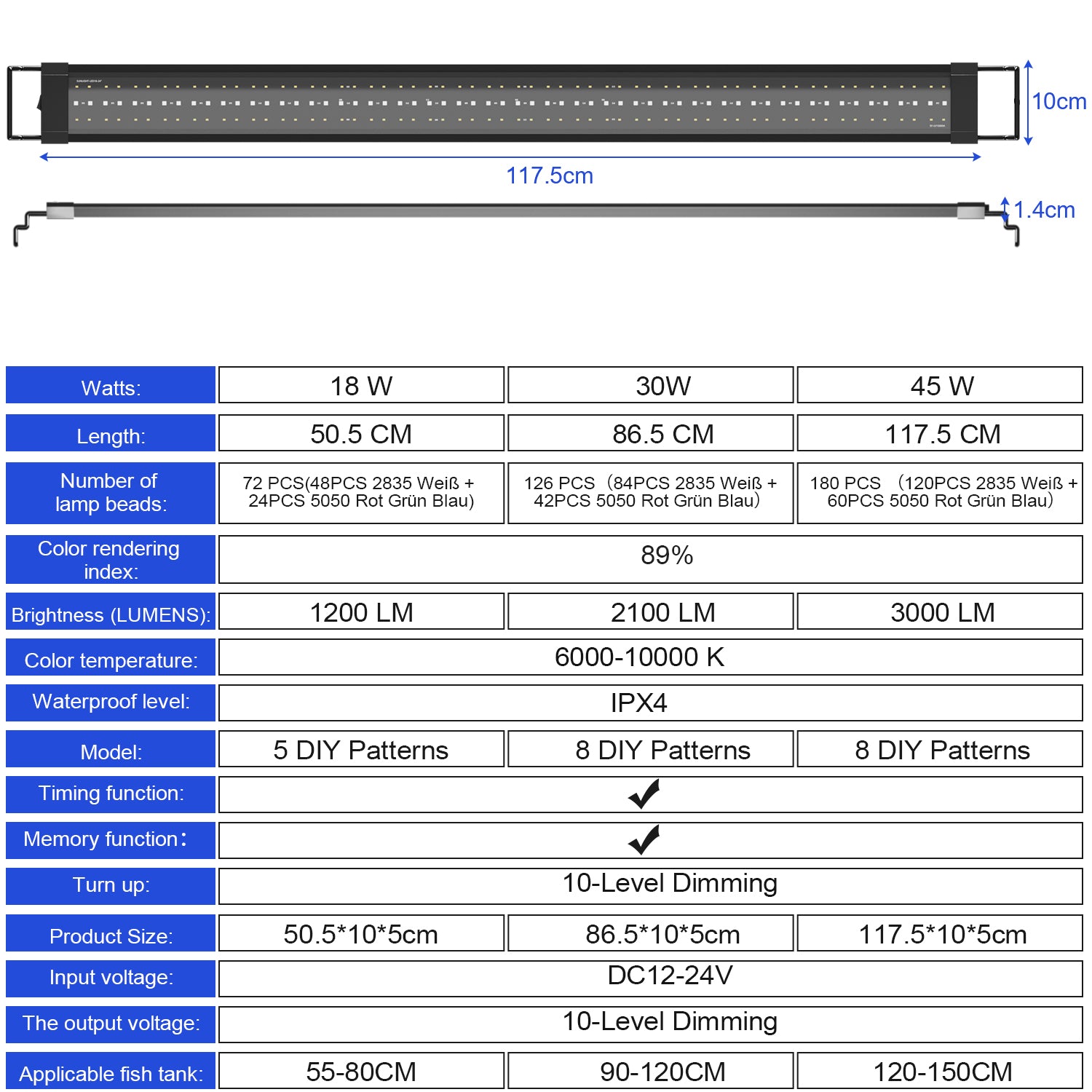 45W, 120 weiß + 60LED5050 rot grün blau, 3000LM, geeignet für 120-150cm Aquarien
