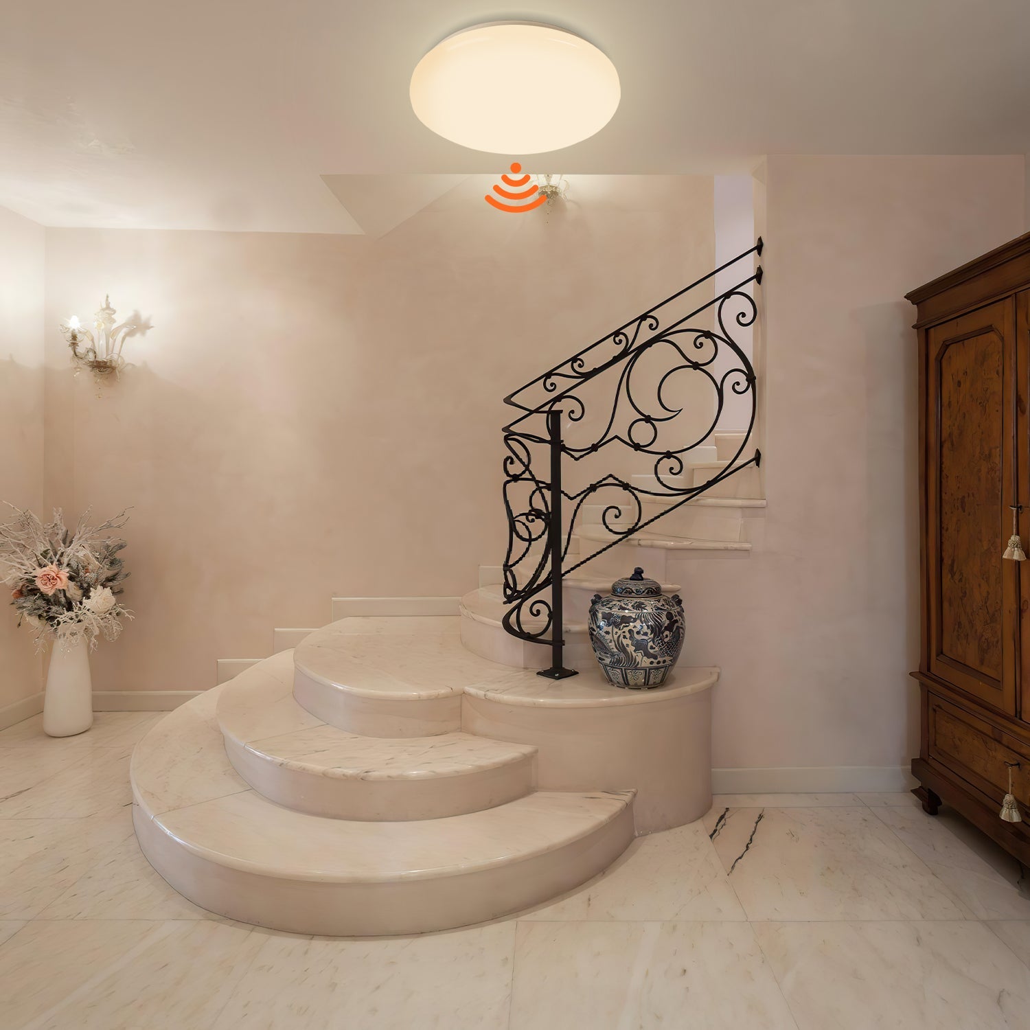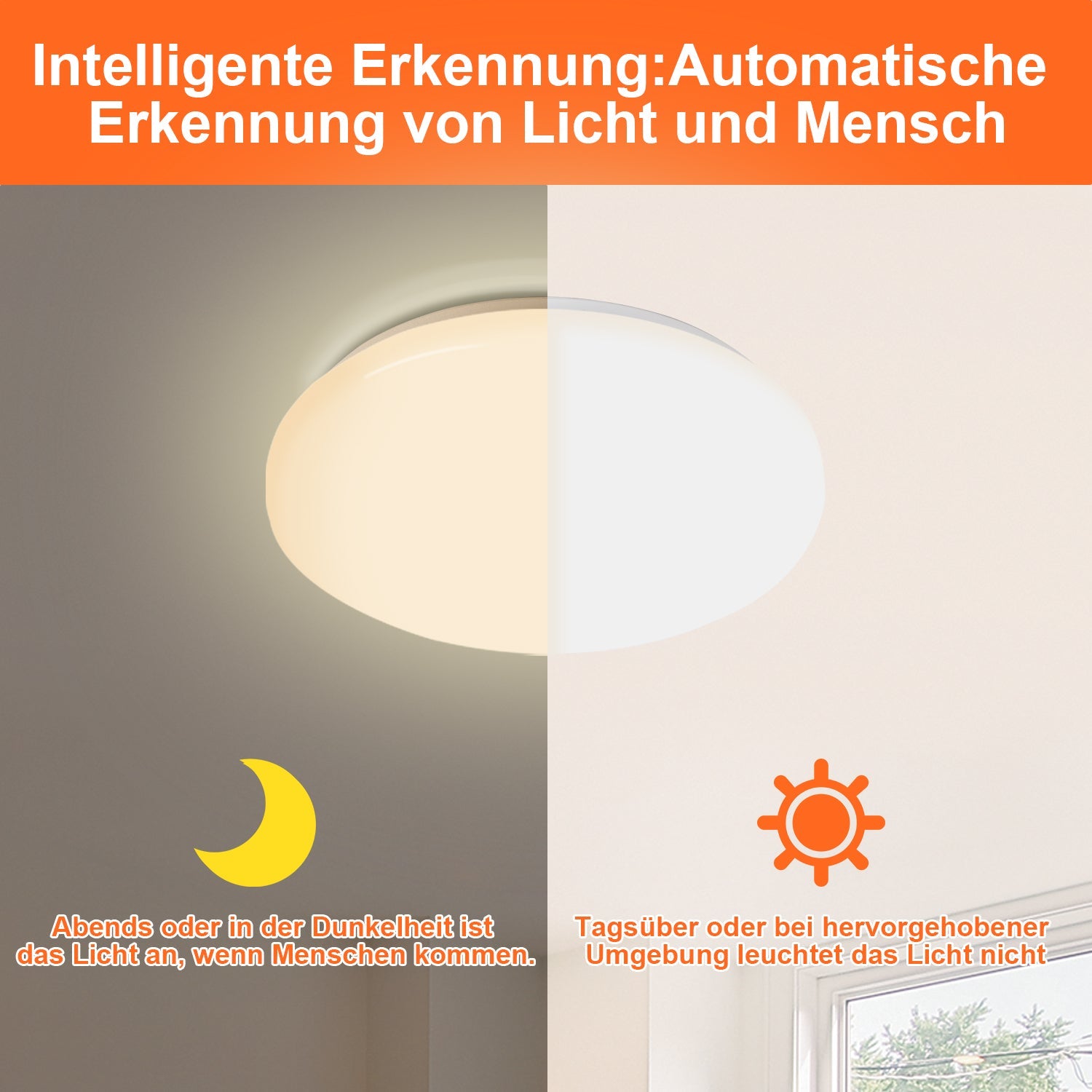 Hohe Helligkeit: Mit 120° Abstrahlwinkel strahlt die 12W LED Sensordeckenleuchte helles Licht aus, gleichmäßige Lichtverteilung, hohe Farbwiedergabe, die LED Deckenlampe kann einen Raum von 12-18 ㎡ komplett ausleuchten.