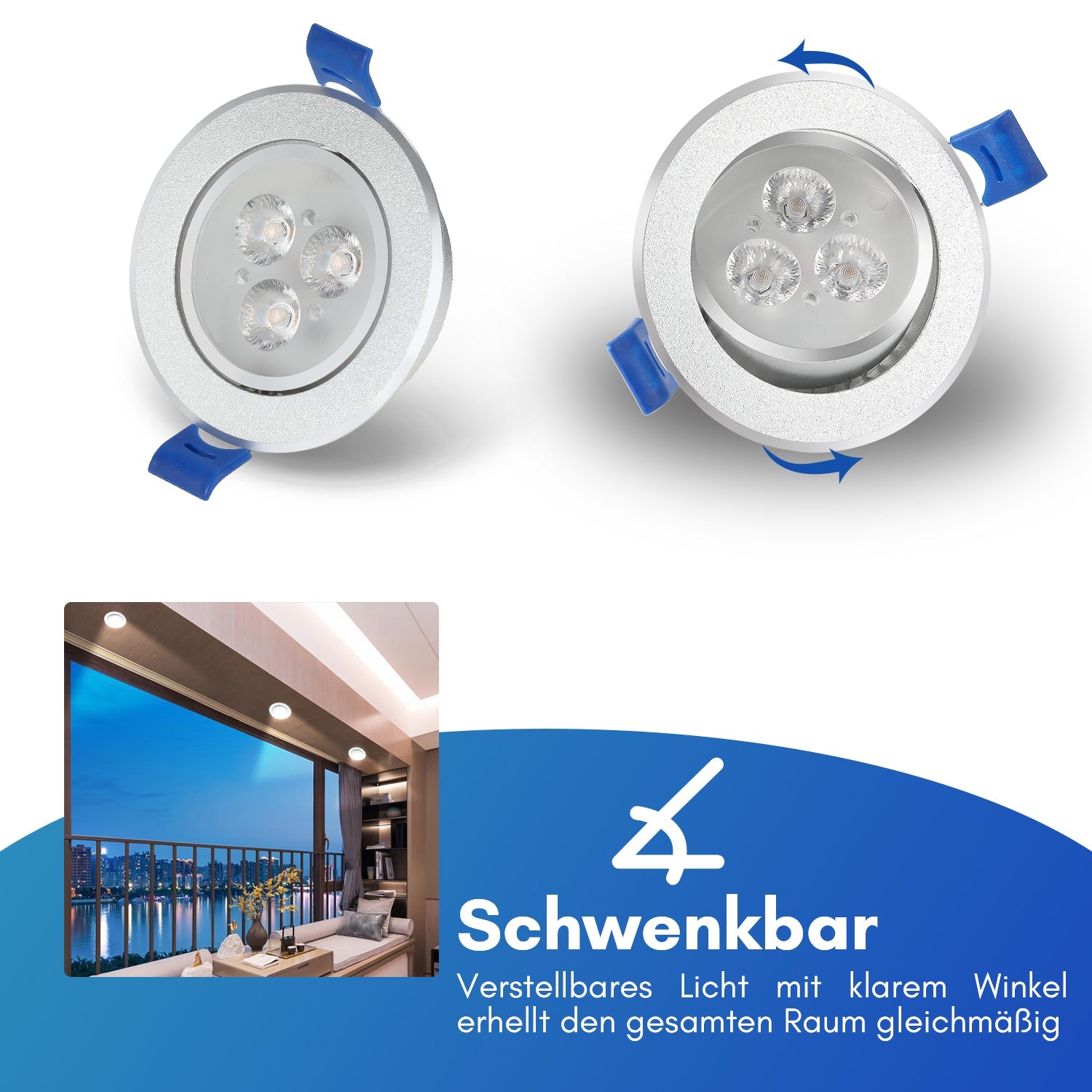 LED Einbaustrahler schwenkbar Rund: Der Lampenkopf dieser Spots Decke kann um 30 Grad gedreht werden. Sie können den Lichtwinkel und die -richtung individuell anpassen, um eine personalisierte Beleuchtung zu schaffen. Egal ob Sie bestimmte Dekorationselemente hervorheben oder eine sanfte und atmosphärische Beleuchtung erzeugen möchten, diese Einbauleuchte erfüllt all Ihre Designansprüche in Perfektion.