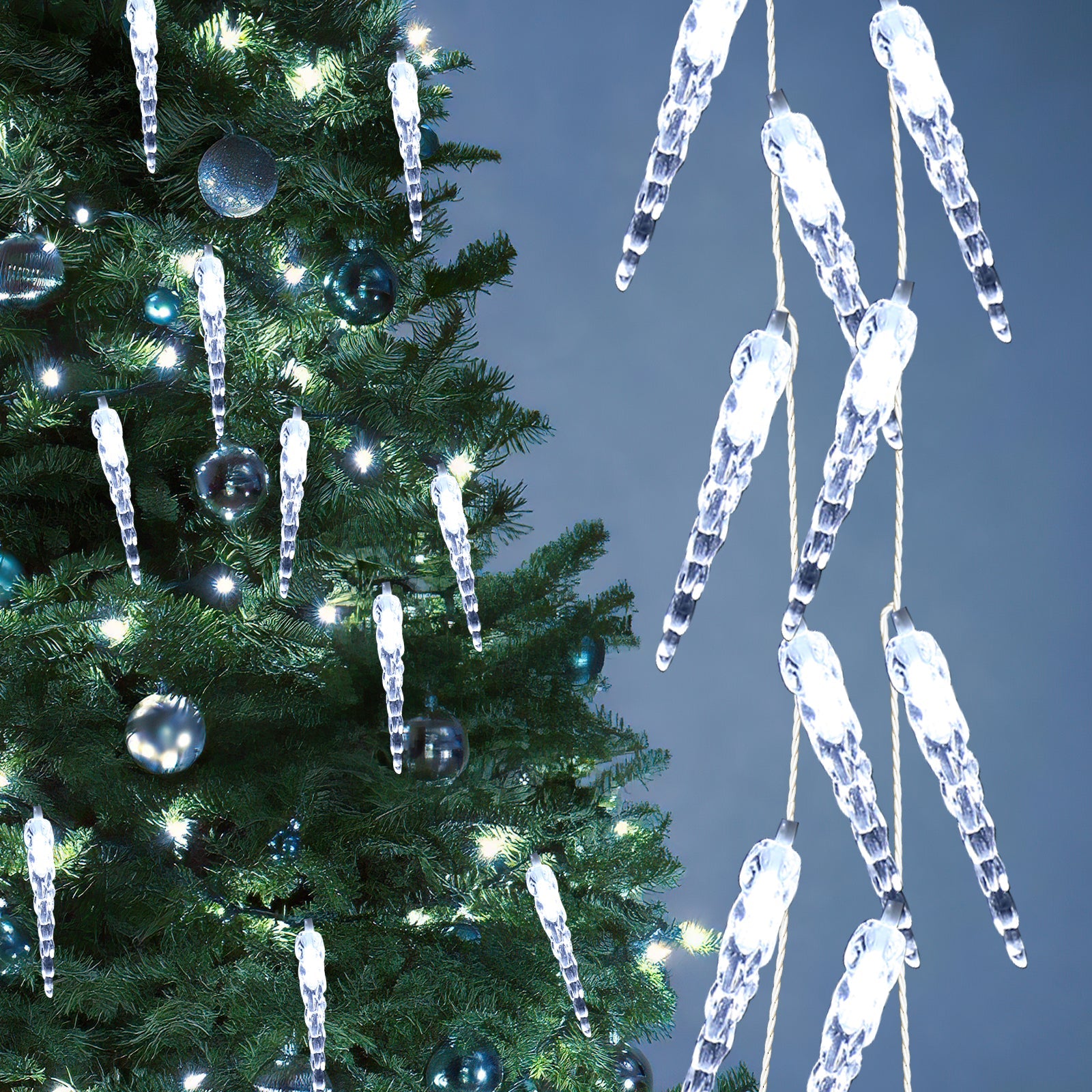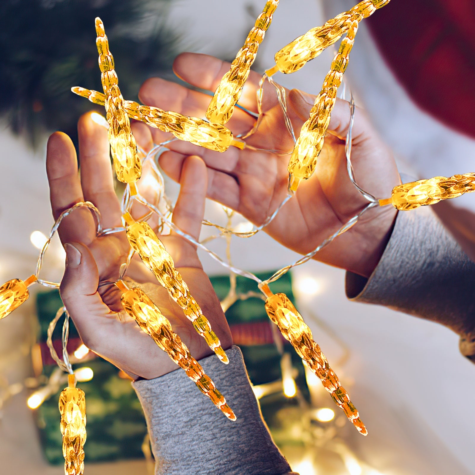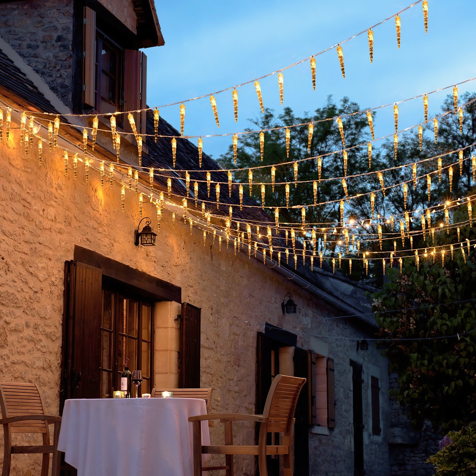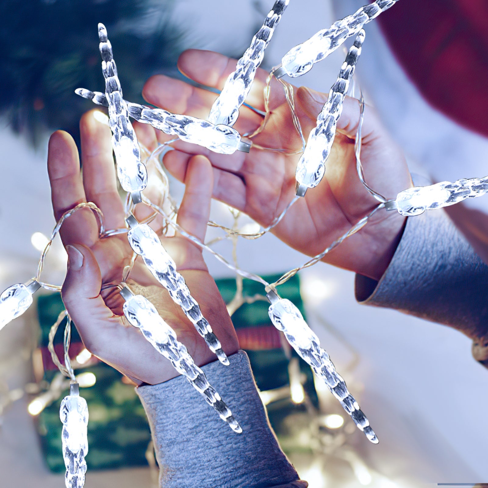 【Eiszapfen Weihnachtslichter Lichterkette】Der Innen Aussen Lichterkettenvorhang string lights verfügt über 40 Eiszapfen mit stromsparenden und langlebigen LEDs Warmweiß / Kaltweiß. Die Länge der Weihnachtslichterkette beträgt 10m (inkl. 5m Zuleitung Kabel).