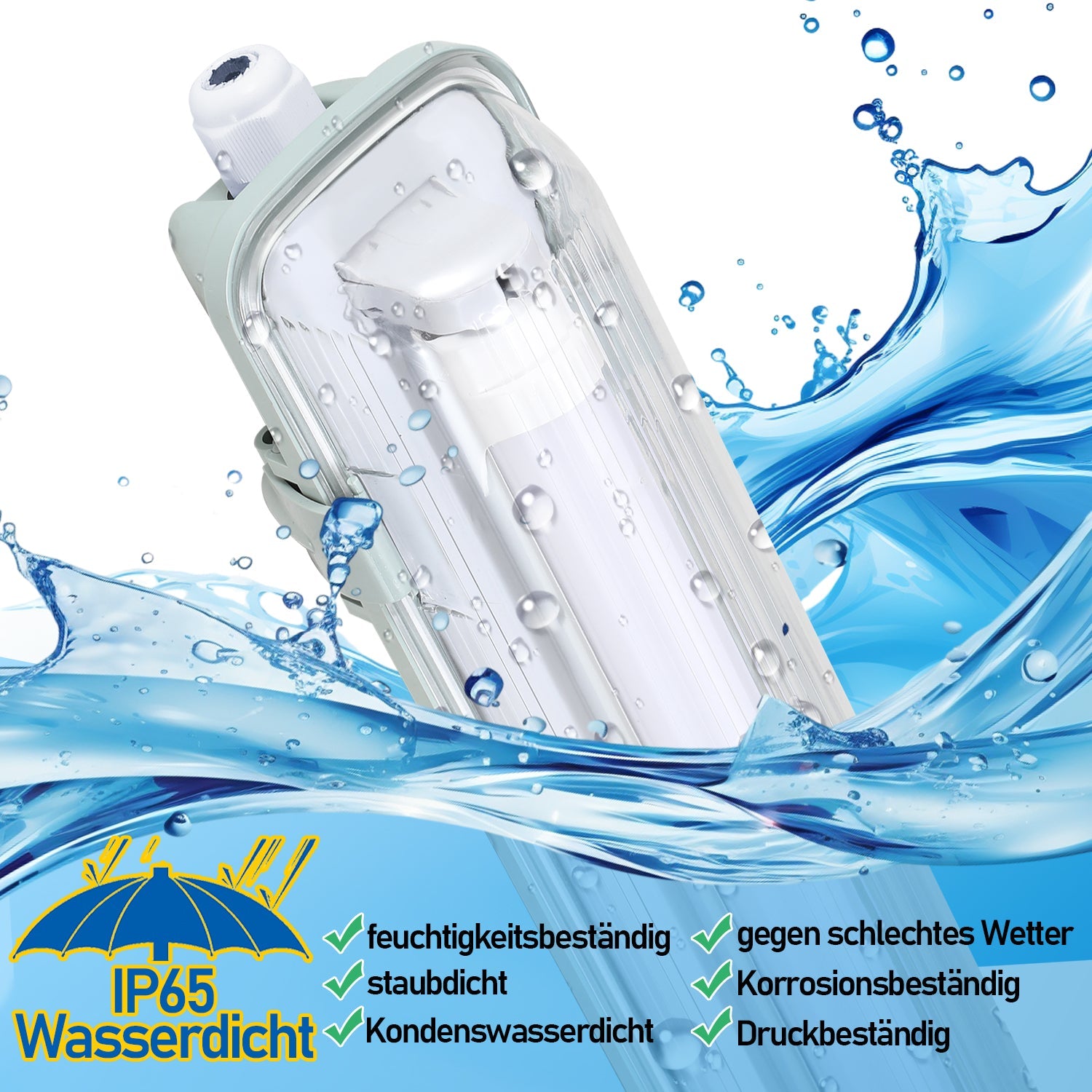 【Energiesparend】Unsere feuchtigkeitsbeständigen LED-Lampen sparen 85% Energie und haben eine lange Lebensdauer von 50.000 Stunden. Das Licht ist gleichmäßig und weich, ohne Flackern.