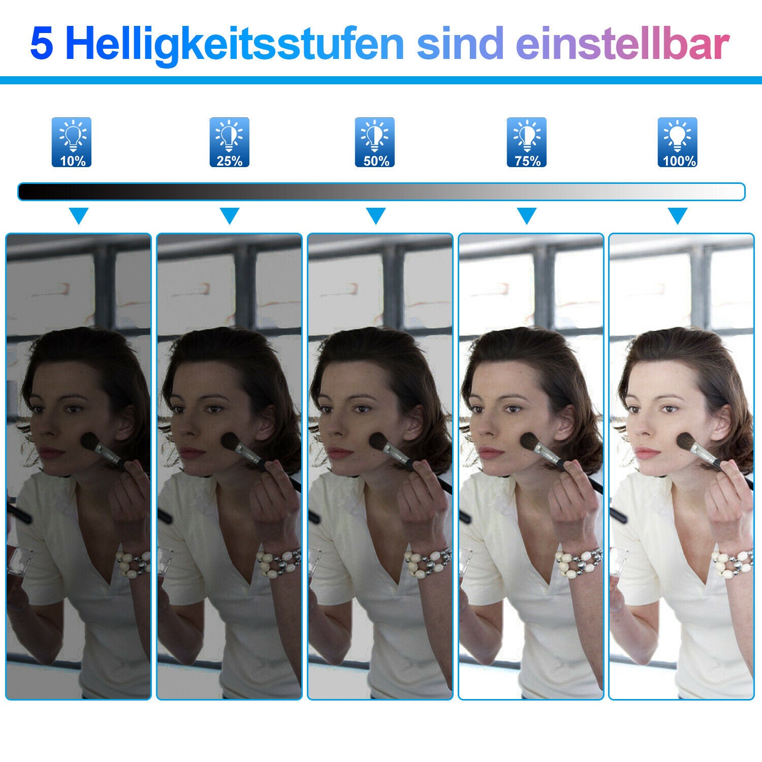 Unsere Spiegelleuchte hat drei Farbtemperaturen, fünf einstellbare Helligkeitsstufen und ist äußerst einfach zu installieren, um sofort einen perfekteren Make-up-Look zu erzielen.