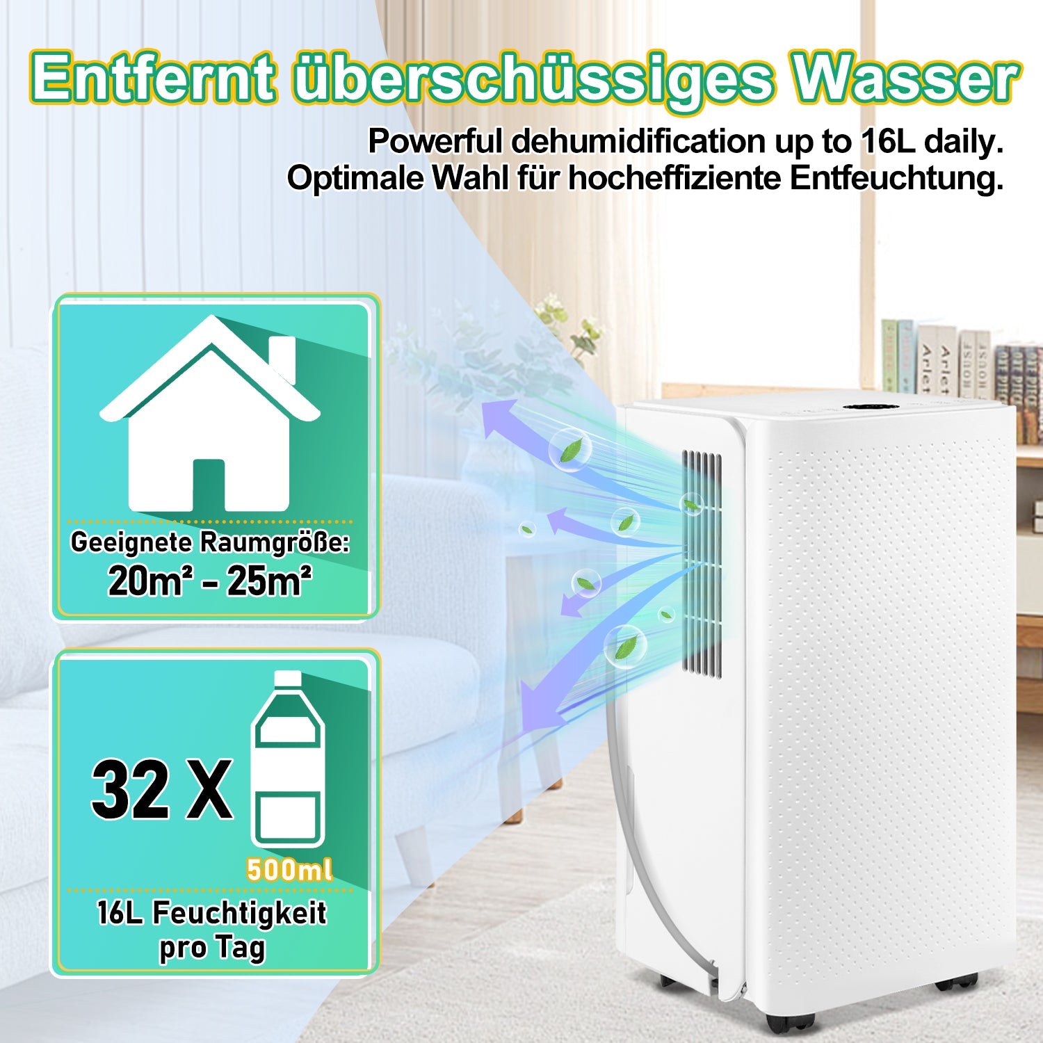 【Hohe Effizienz Feuchtigkeit und Schimmel entfernen】Mit einer Entfeuchtungsleistung 16 L/Tag(24H) kann der Luftentfeuchter Feuchtigkeit entfernen und Schimmelbildung verhindern, Besser in 20-25 Quadratmetern verwenden. Signifikante Entfeuchtungseffekt.Mach dir keine Sorgen mehr um den Muffiger Geruch!