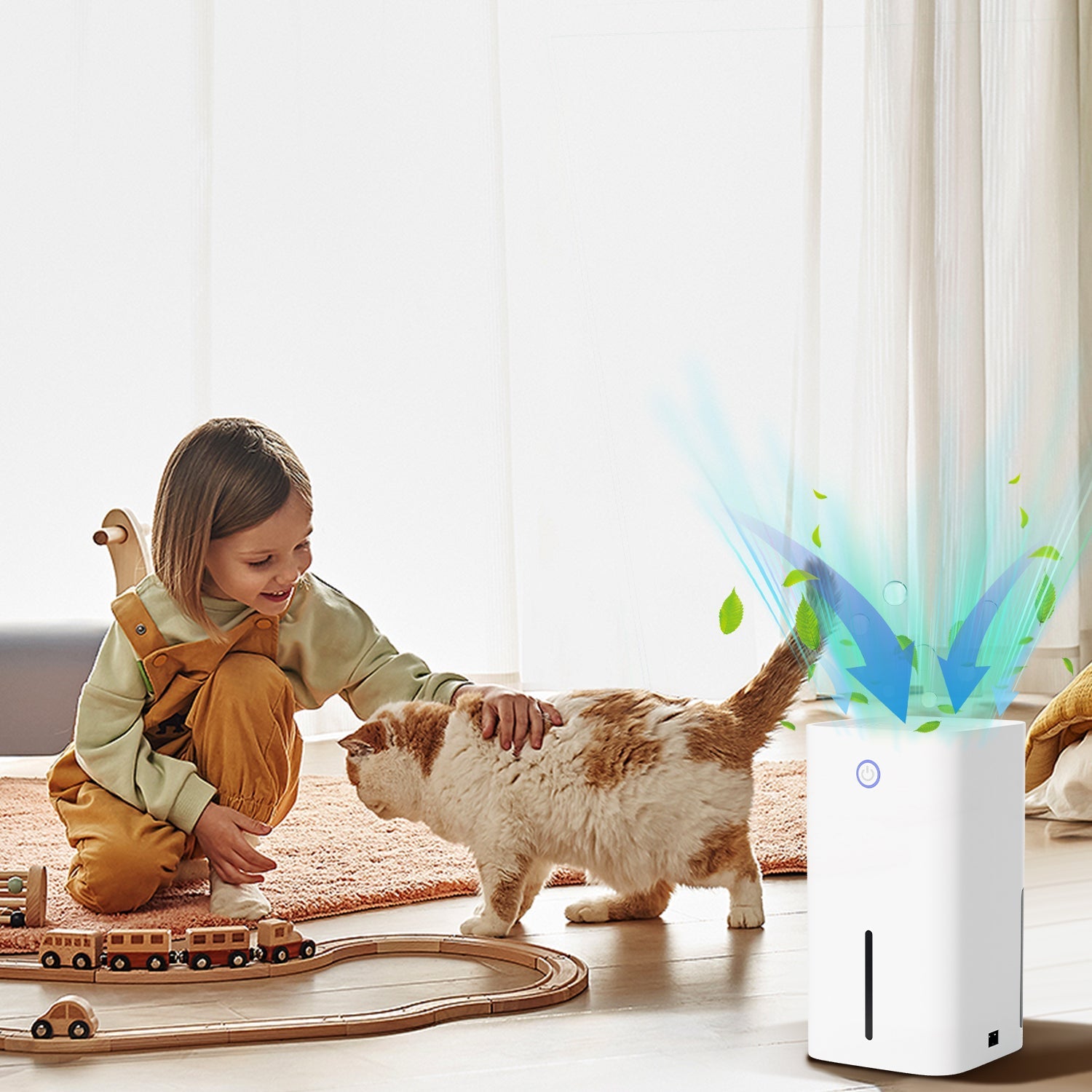 [Wichtige Verwendung] Der Mini-Lufttrockner entfernt Allergieauslöser wie Schimmelpilzsporen und Hausstaubmilben aus der Luft, was dazu beiträgt, die Luftqualität zu verbessern, die Beschwerden von Allergikern zu verringern, die Gesundheit zu schützen und Schimmel und Geruch an Wänden, Kleidung, Böden usw. zu verhindern.
