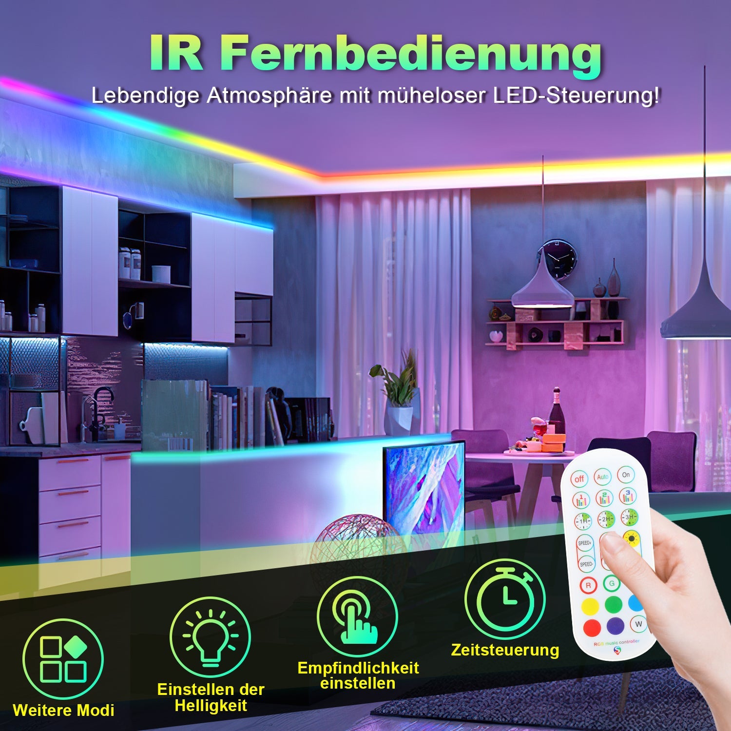 Vielseitige Funktionen: LED Streifen bieten eine Auswahl aus 16 Millionen Farben und die Möglichkeit, individuelle Lichtmuster zu erstellen und zu speichern. Dank der Timer-Funktion können Sie die Beleuchtung bequem über die App automatisch steuern.
