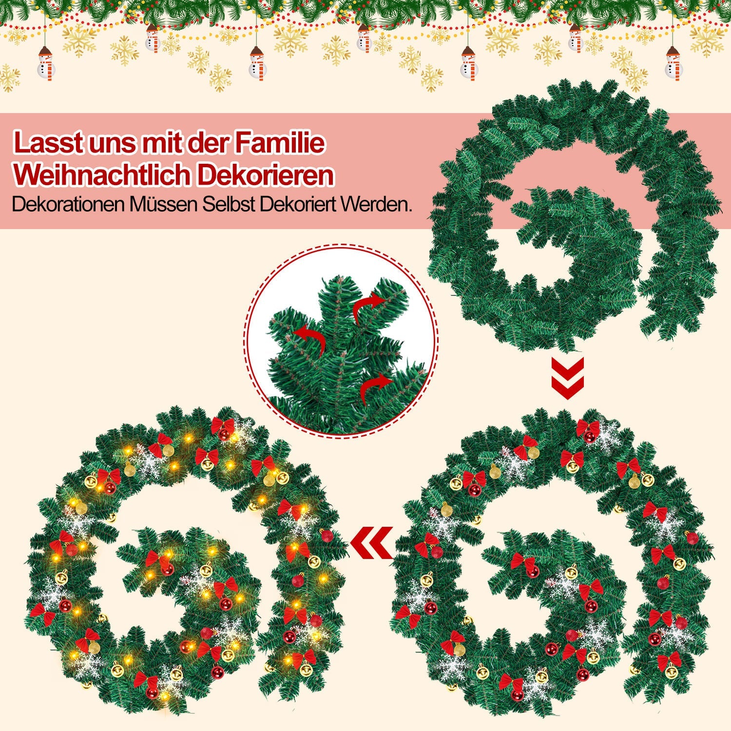 1 x 5m Weihnachtskranz inkl.Deko und LEDs